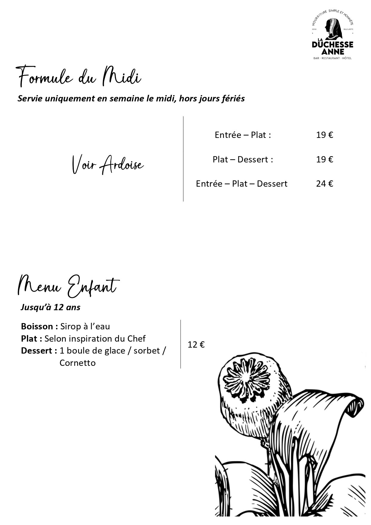 Niché au cœur du centre historique, le Restaurant La Duchesse Anne vous invite à une escale culinaire où la tradition française s’exprime dans toute sa générosité. Ici, la cuisine est faite maison, sincère et savoureuse, préparée chaque jour avec des produits frais et de saison.